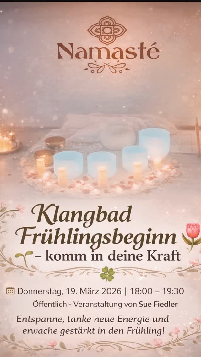 Yoga für den Rücken, Kundalini-Yoga, Fit in den Frühling, Yoga fürs Immunsystem Klangschalenmeditationen - sooooo viele tolle Angebote. Schau im Kalender, was zu dir passt und buche dir deine Auszeit.